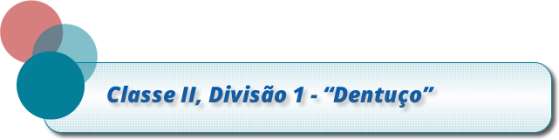Os pacientes Classe II, divisão 1 (Dentuços) são aqueles que apresentam os incisivos superiores projetados para frente tendo o aspecto facial de "Dentuço".